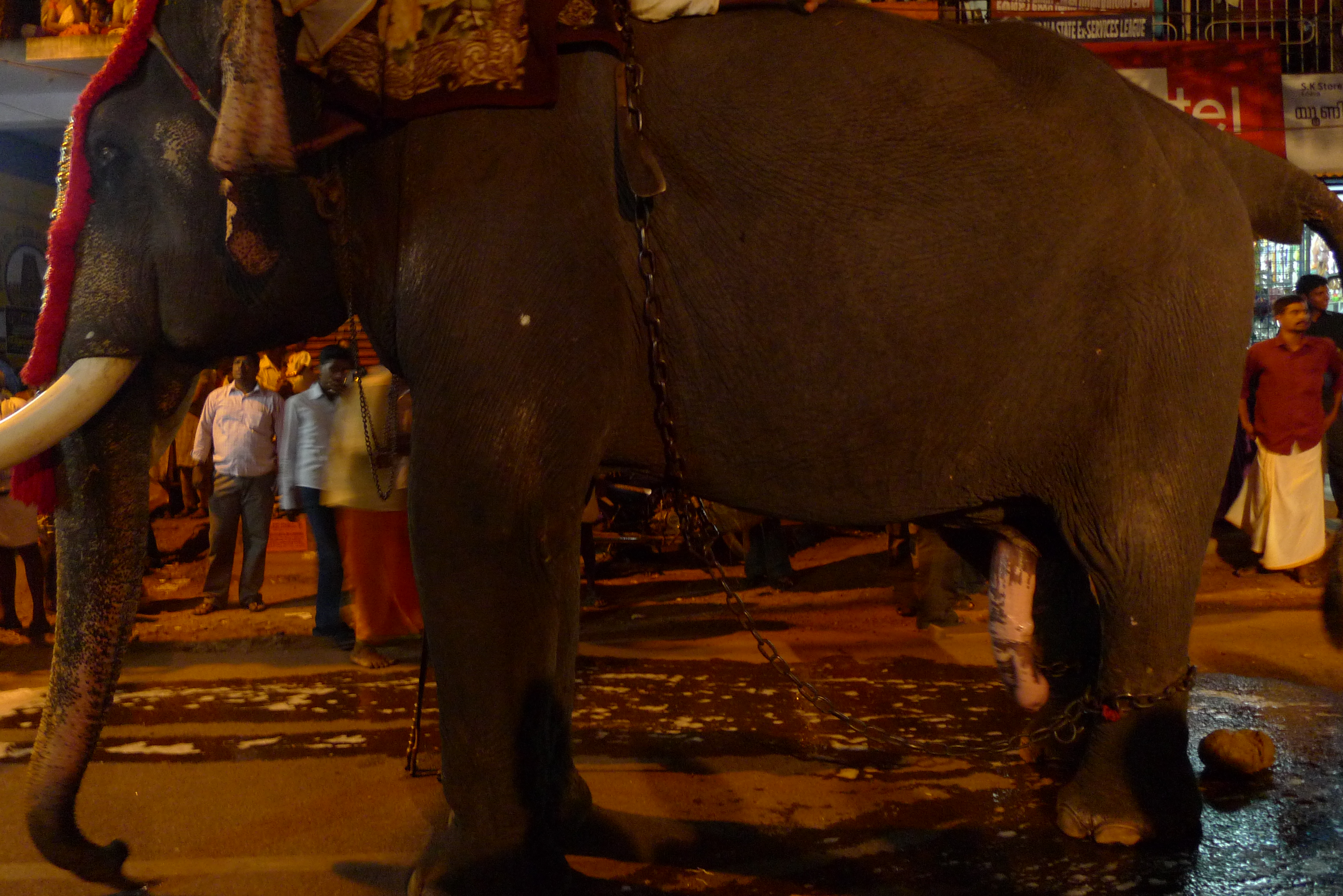 Then finally, we went to a Hindu Festival. There were seventeen elephants. Alula now wants to convert to Hinduism. Actually there wouldn’t need to be a conversion because she’s nothing now except maybe a hedonistic worshiper of the goddess Barbie, but you know what I mean. Anyway, it was so hot that the sweat was pouring in rivers from places I didn’t know sweat could pour from. You could have panned for salt off my body by the end of the night and put Malden out of business.