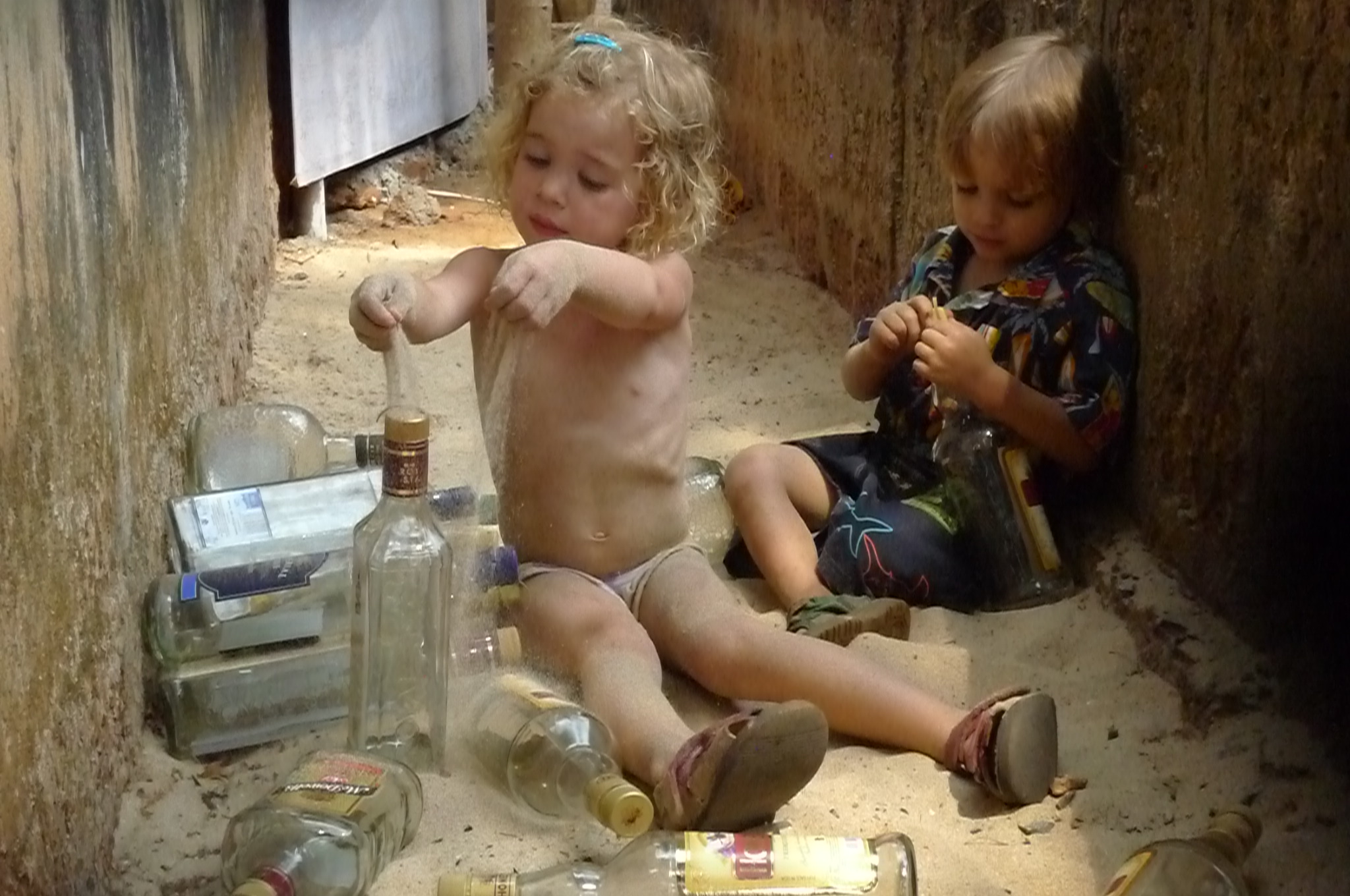 They row canoes across the beach searching for tigers and fairies called Happy. They climb mountains and make princess castles in the sand. In the meantime we sit, drink vodka limcas and pay the nearest five year old five rupees to watch they don’t drown.