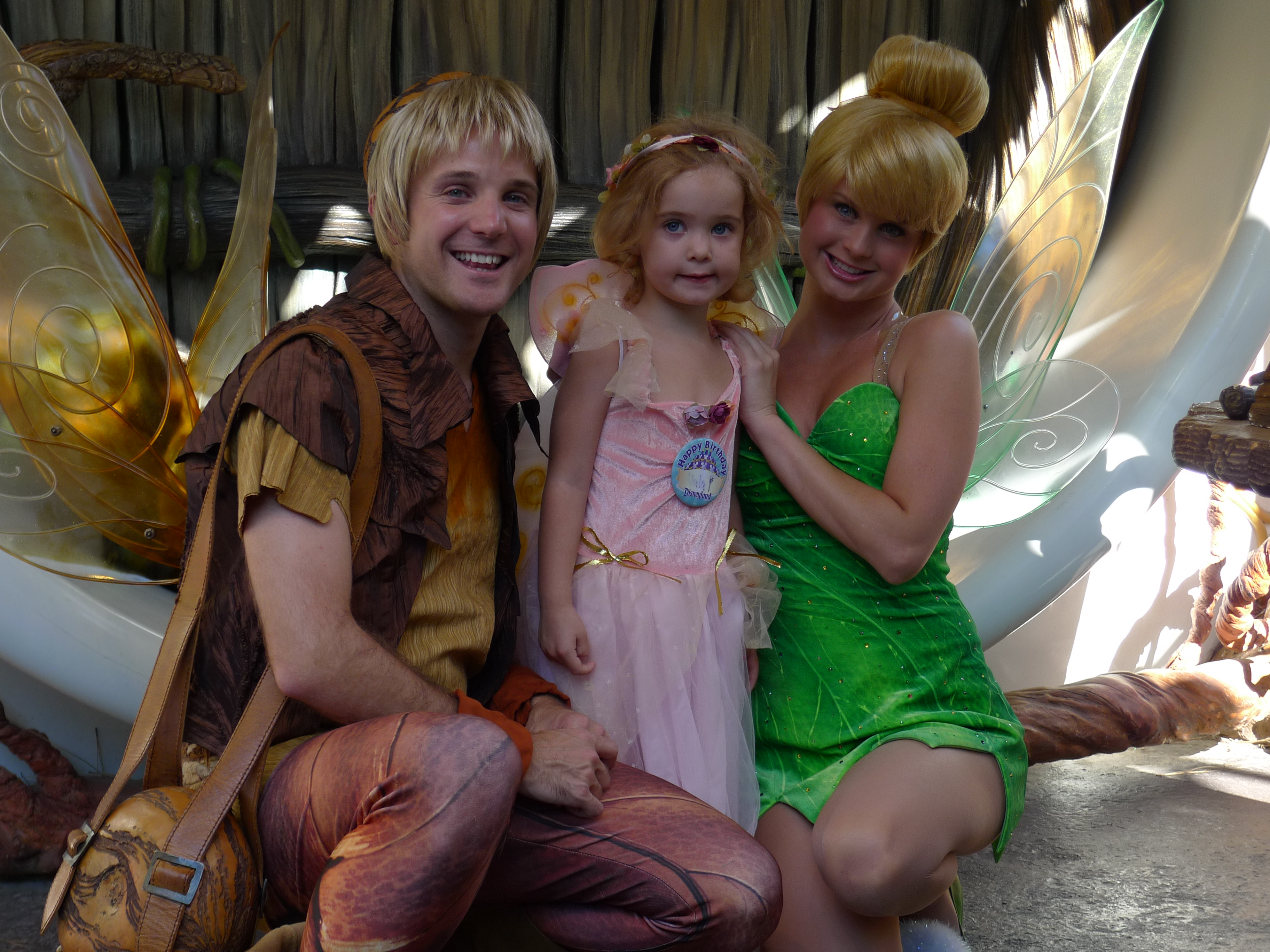 FYI, the guy with TinkerBell is named Terence, also a pixie from Pixie Hollow (appearing in the TinkerBell movies), which is why they were together at the meet and greet picture location. Definitely not Peter Pan. Peter Pan wears all green.