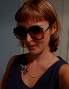 And the piece de resistance, my new sunglasses, bought for $3.49 in the Goodwill in downtown SF. Dierdre Barlow eat your heart out.