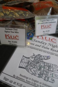 This picture is so Ubud. Buy your organic cakes and coffee. And have your palm read at the same time. Love it.