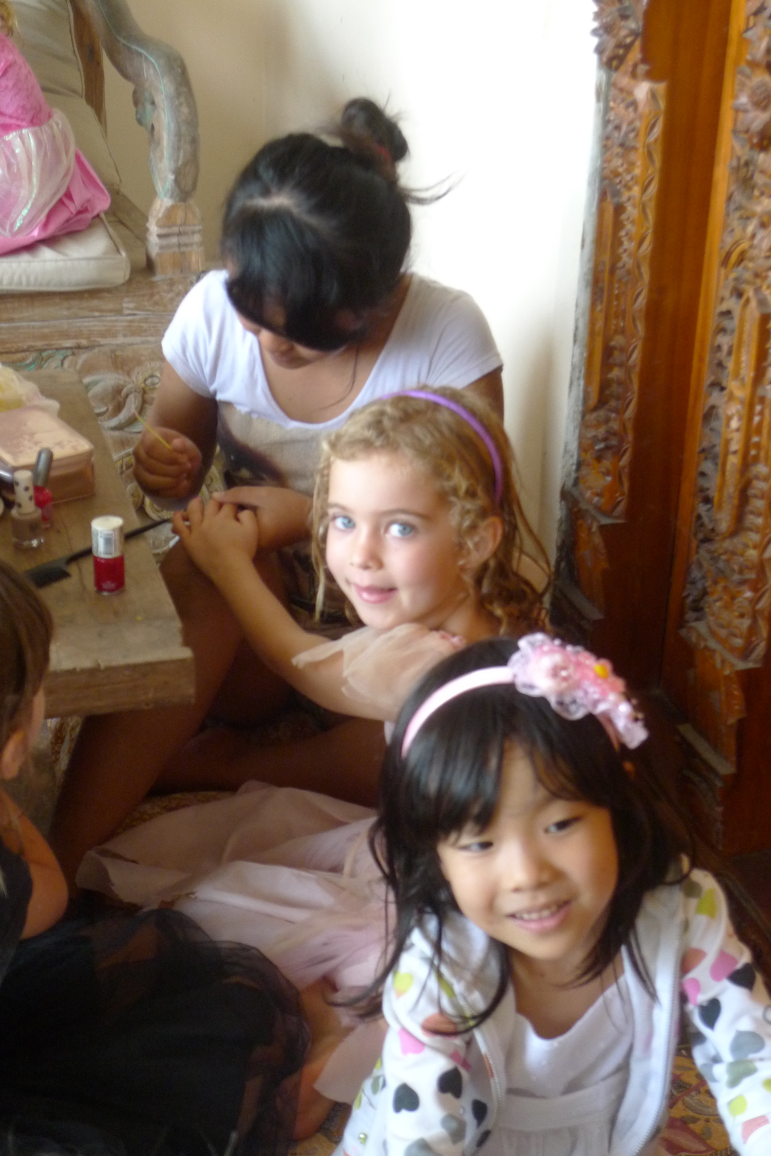 Well, Alula turned six and started first grade! Can you believe it? We left the UK when she was 3 so it feels now like she’s spent half her life living overseas and is a proper ex-pat kid. A theory confirmed today when John and I tried to work out where she’d been disappearing to for half hours at a time. It turned out she was running next door and having the lovely Balinese girls who live there braid her hair and paint her nails.