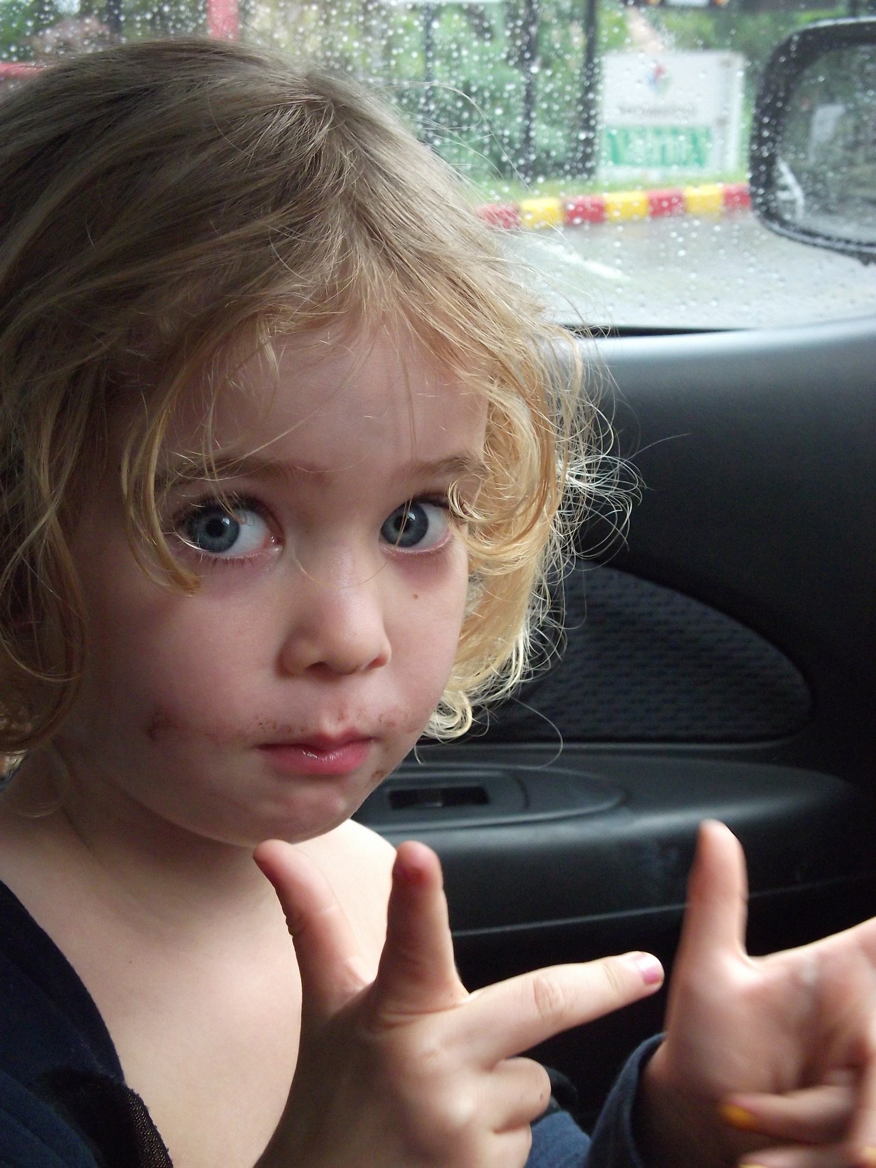 I will buy you ten chubba chups if you let go of me and look at the camera.
